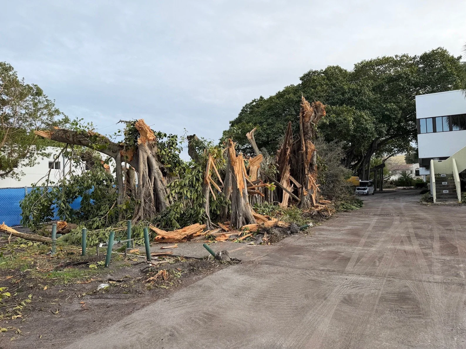 The City Council voted unanimously to approve the destruction of three large 100 year-old Banyan trees that is happening right now at the Modera development at 400 S Dixie Highway.
