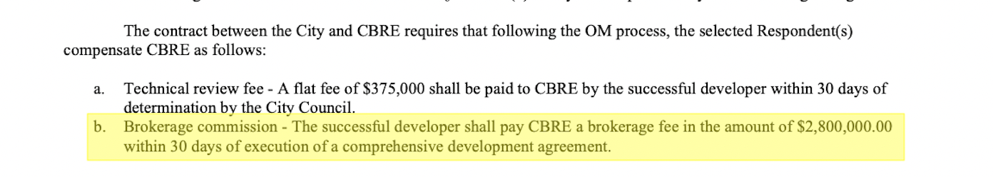 In addition to being the financial consultant to the City of Boca Raton on the project, CBRE Inc. stands to make $2.8 Million in brokerage fees on the deal. Over the course of the last year, the Mayor and City Council have used financial revenue estimates completed by this biased consultant to sell the benefits of the project to the citizens.